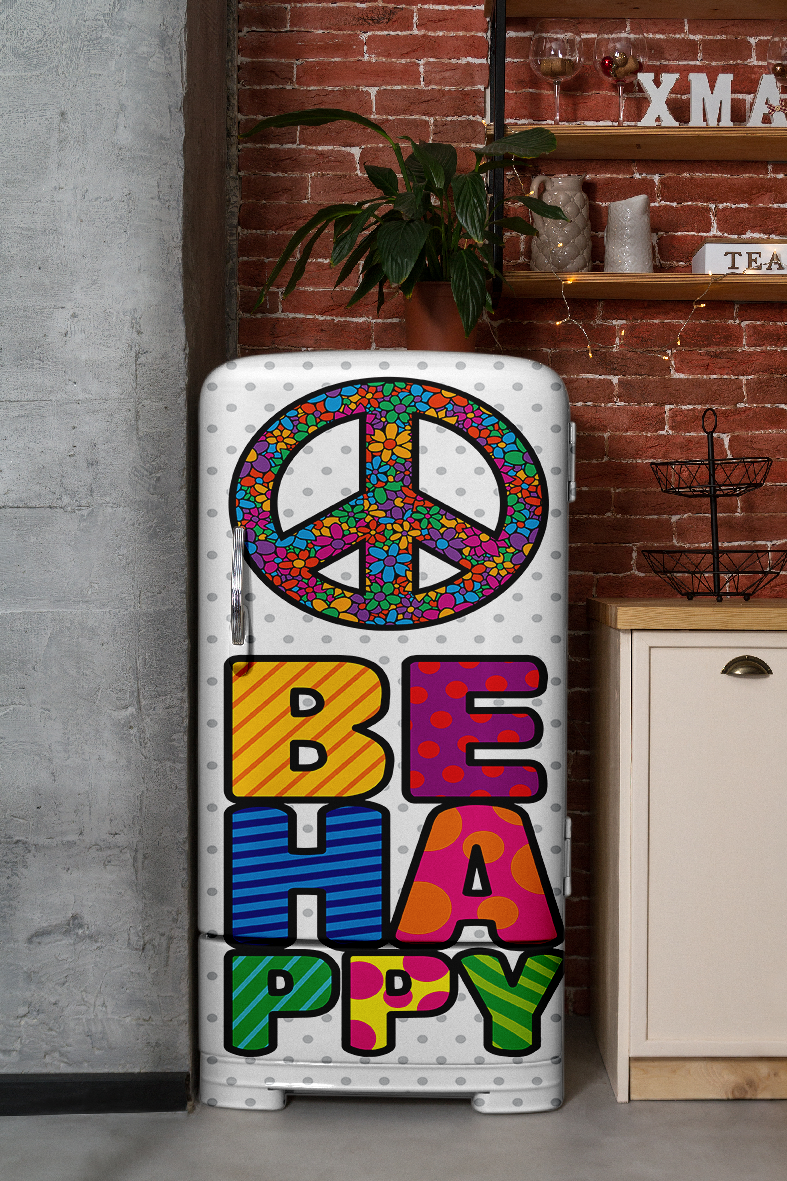 Decorativo en Adhesivo laminado en alta Impresión, durabilidad 100% (se puede lavar o limpiar sin el temor que se despegue o se venga el color de la impresión), especial para decoración de Neveras, refrigeradores entre otros, es muy fácil de instalar, te ayudará a dar un toque único a tu decoración en el Hogar.